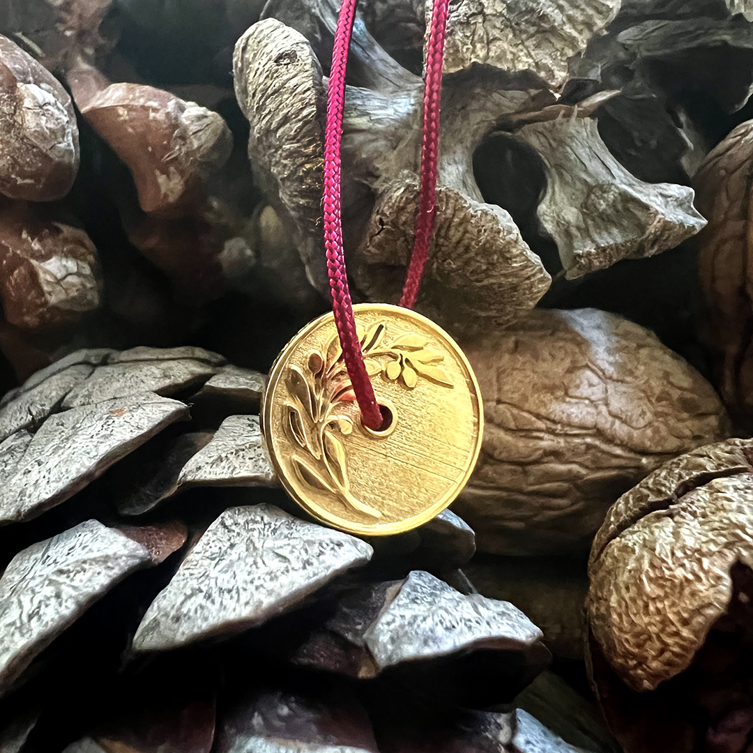 Γυναικείο κολιέ κατασκευασμένο από ασήμι 925 με επιμετάλλωση χρυσού 24Κ & semi-gloss φινίρισμα. Μήκος κορδονιού 50εκ. χωρίς αυξομείωση. Ένα διακριτικό αλλά γεμάτο νόημα γούρι για το 2026. Το νόμισμα με το χαραγμένο κλαδί ελιάς συμβολίζει την ηρεμία, την προστασία και τη δύναμη που γεννιέται μέσα μας. Φτιαγμένο με αγάπη, για να σας θυμίζει καθημερινά ότι κάθε νέα αρχή μπορεί να γίνει πιο φωτεινή όταν την αγκαλιάζουμε με καρδιά ανοιχτή και πίστη στα όμορφα που έρχονται.