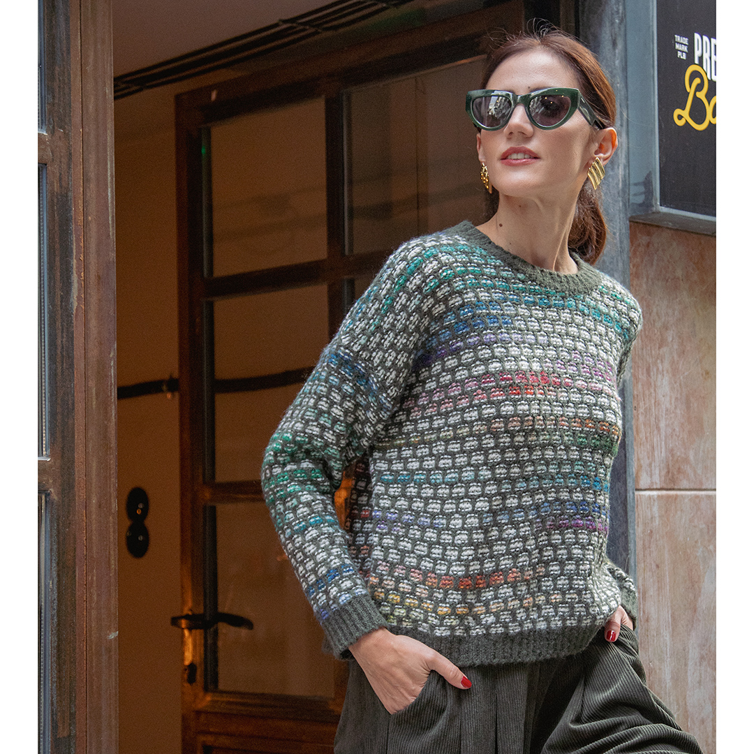 – Girls in the Sun πουλόβερ “Beehive Pattern”, μακρυμάνικο με ανάγλυφη πλέξη & στρογγυλή λαιμόκοψη.